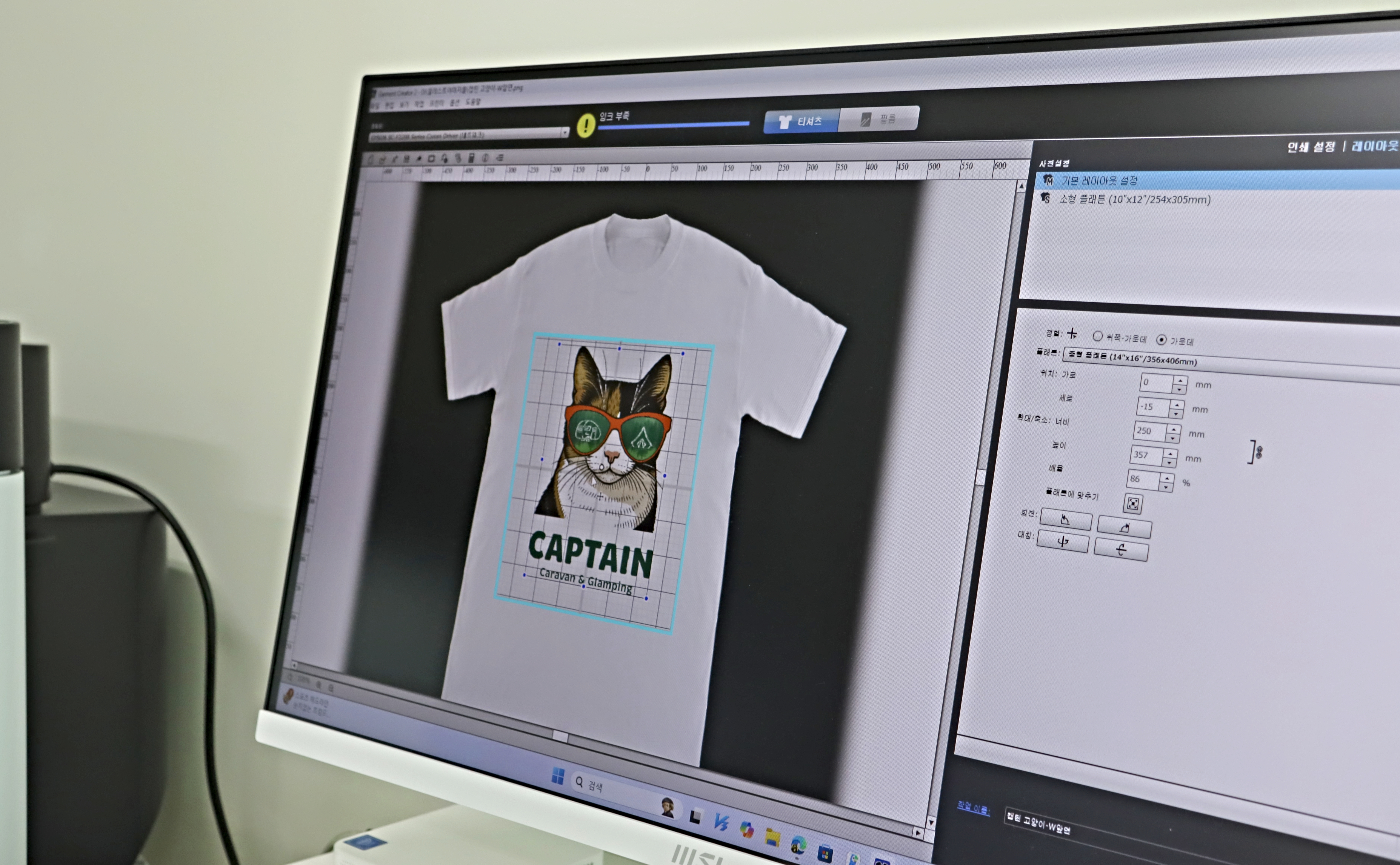 - 디자인을 소프트웨어에서 배치 후 프린트 실행