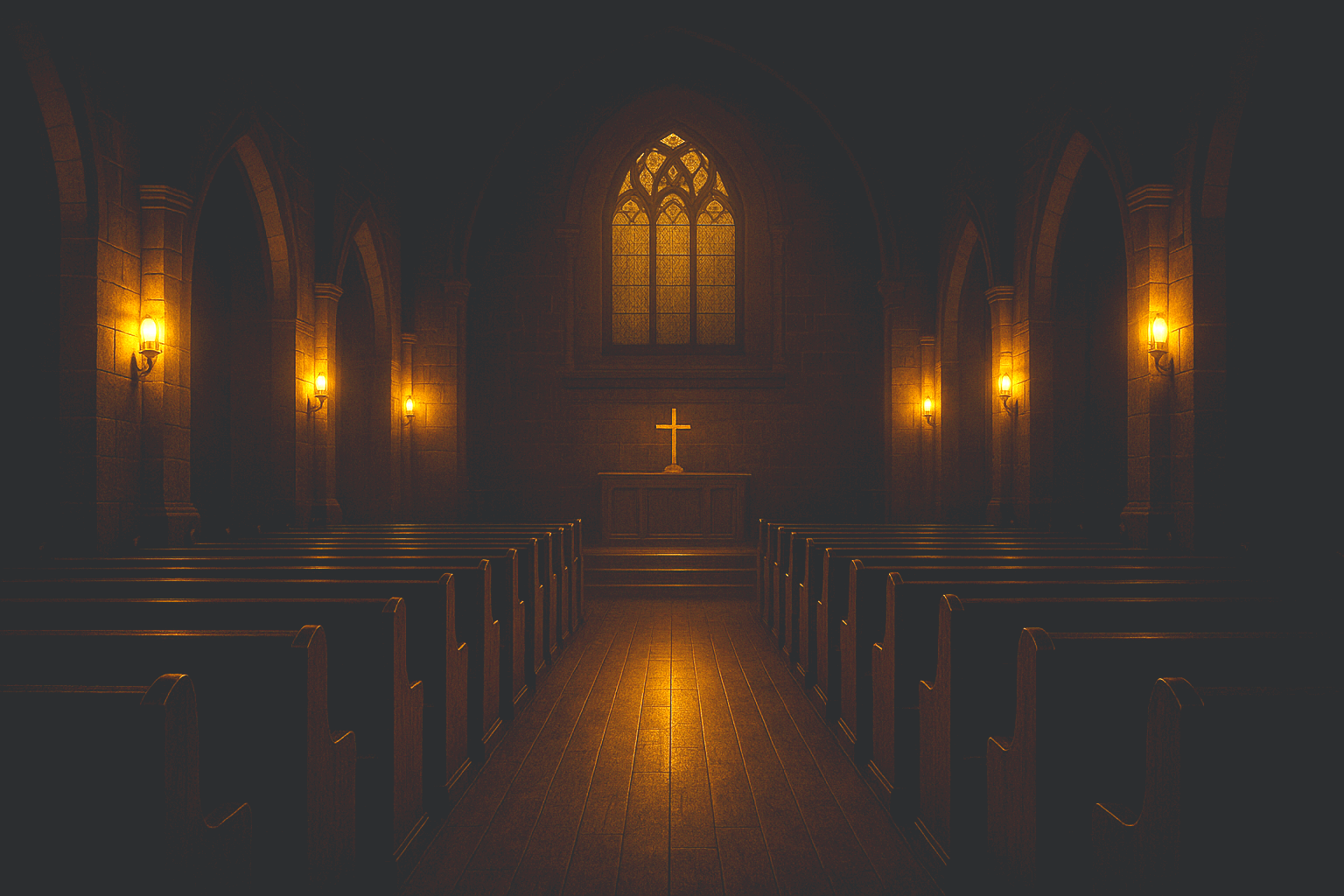 고요한 조명, 스테인드글라스 느낌의 빛,