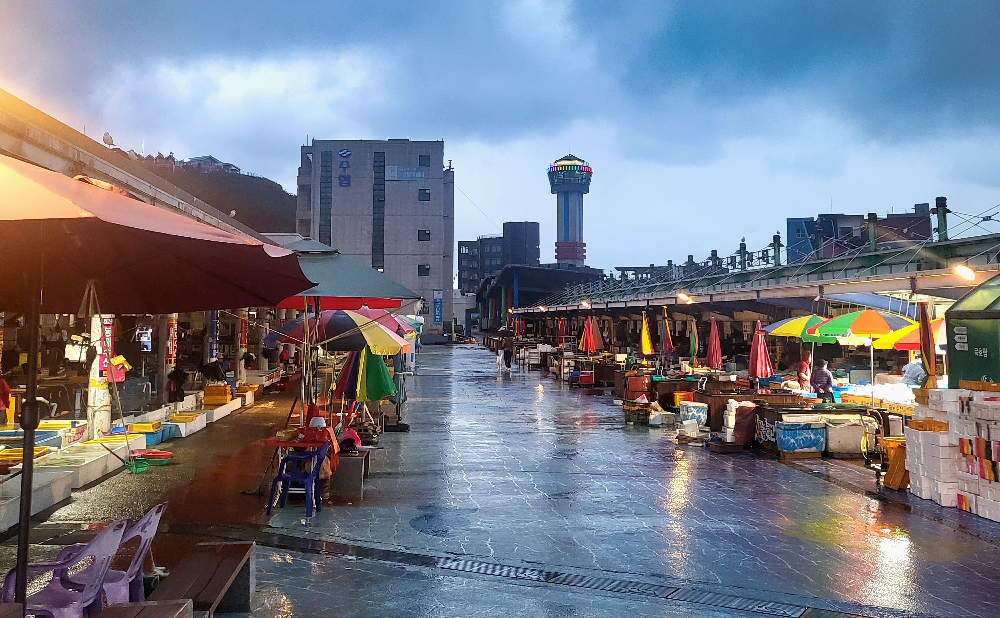 시장엔 여전히 비 냄새와 파도 냄새가 뒤섞여 있었다.