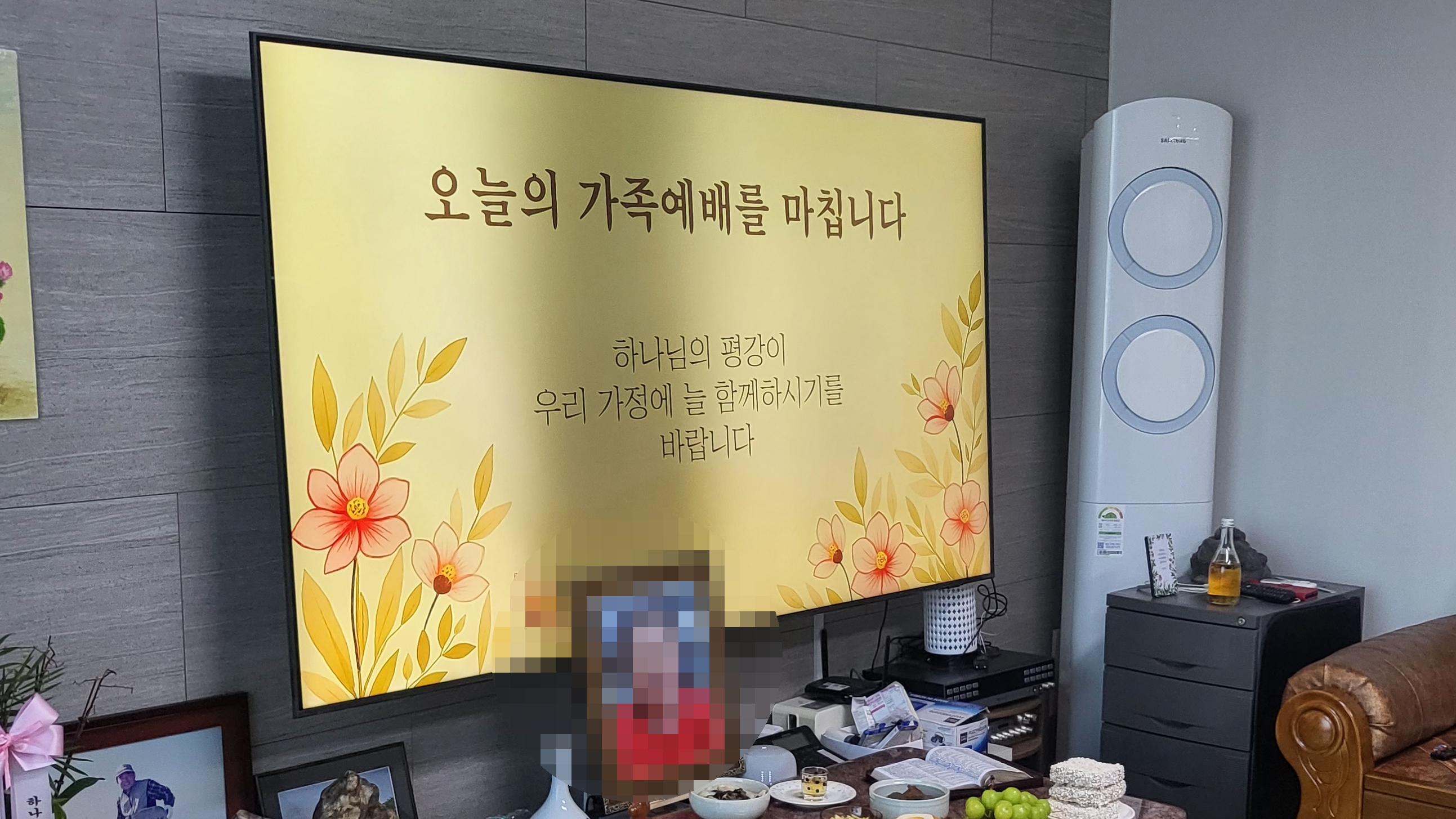 TV 화면을 통해 묵상 영상을 함께 보았습니다.