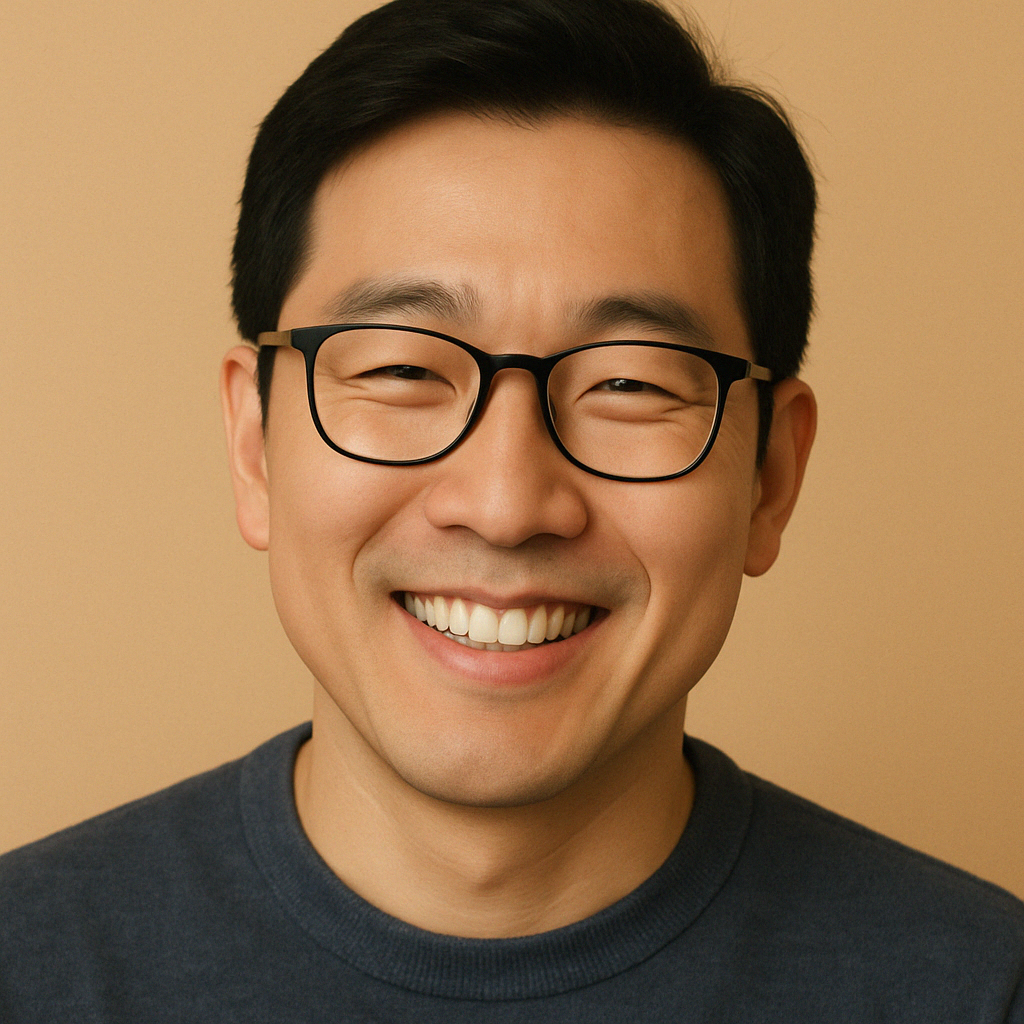‘웃는 중년 남성, 따뜻한 느낌’이라고 써봤습니다.